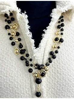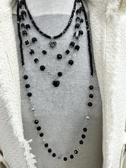 Длинные черные бусы из Агата