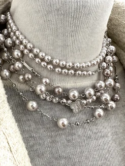Бусы многослойные с серым жемчугом трансформер