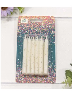 Свечи для торта набор 12 шт 8 см с блестками