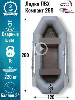 Лодка для рыбалки ПВХ надувная двухместная Компакт 260