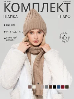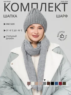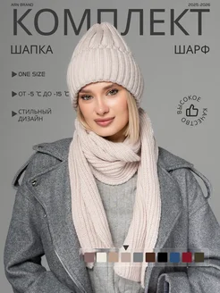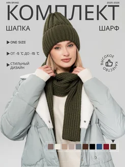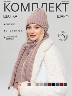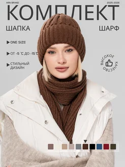 Вязаный комплект шапка и шарф зимний
