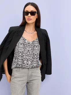 Топ шелковый на бретелях с орнаментом рептилия