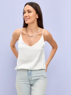 Топ шелковый на бретелях белый базовый