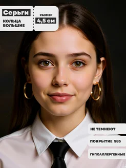 Серьги кольца бижутерия круглые узкие 4,5 см