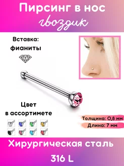 Пирсинг в нос титан с камнем гвоздик серьга в крыло нострил