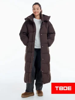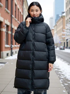 Удлиненная теплая куртка с капюшоном на синтепоне