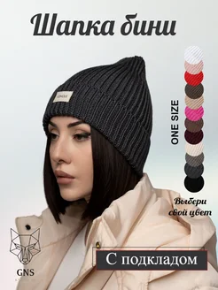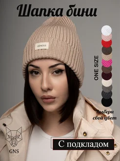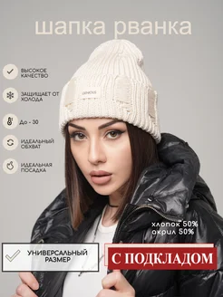 Шапка с подкладом рваная осенняя-весенняя бини с отворотом