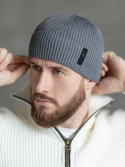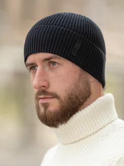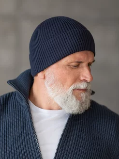 Шапка бини вязаная осенняя с отворотом классика легкая