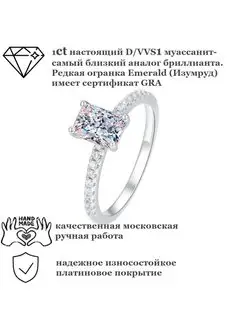 Кольцо c Муассанитом Бриллиантом 1ct Emerald Изумруд Платина
