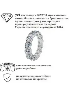 Кольцо c Муассанитами Бриллиантами 7ct D VVS1 Дорожка