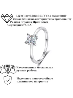Помолвочное Кольцо c Муассанитом Бриллиантом Принцесса