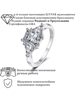 Кольцо c Муассанитами Бриллиантами 3ct Radiant Triangle