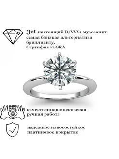 Кольцо c Муассанитом Бриллиантом 3ct D VVS Setting Платина
