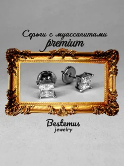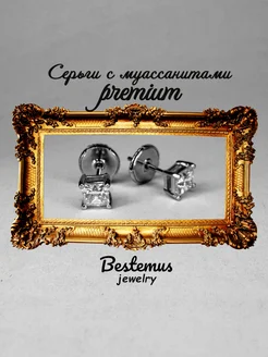 Серьги Пусеты Принцесса с Муассанитами 2ct Бриллиантами CVD