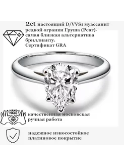 Кольцо c Муассанитом Бриллиантом D VVS1 2ct Груша Pear