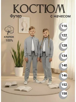 Костюм спортивный детский на флисе с капюшоном на молнии