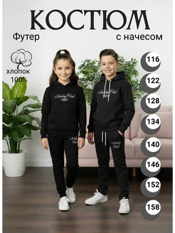 костюм спортивный детский с принтом и капюшоном оверсайз