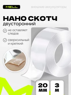 Нано скотч прозрачный двухсторонний 3 метра, 20 мм