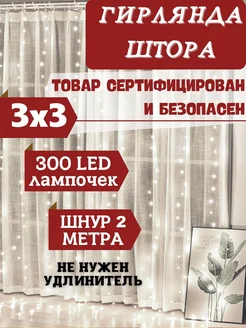 Гирлянда 3х3 на окно новогодние елочные украшения