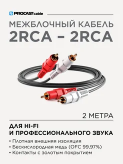 Межблочный кабель 2RCA(m)-2RCA(m), 2 метра, черный