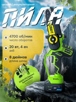 Пила цепная шина 35см,(1 шина 1 цепь 2 АКБ 20 4Ач ЗУ)