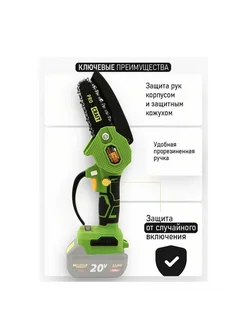 Цепная мини пила сучкорез (1АКБ ЗУ 2шины 2цепи кейс)