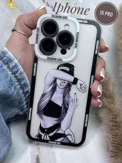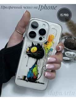Чехол на iPhone 15 Pro прозрачный с принтом, стильный