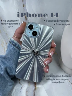 Чехол на iPhone 14 блестящий с сердечком 3D, стильный