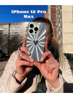 Чехол на iPhone 13 блестящий с сердечком, стильный