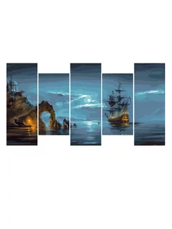 Модульная картина по номерам 80х150 см Лунная ночь