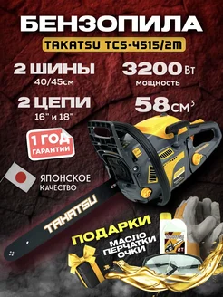 Бензопила TCS-4515 2M, пила цепная бензиновая + подарки