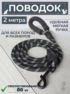 Поводок для собак средних и крупных пород 2 м черный 80 кг
