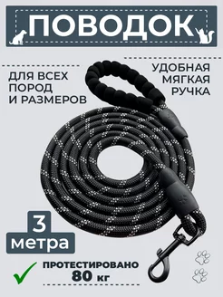Поводок для собак средних и крупных пород 3 м черный 170 кг