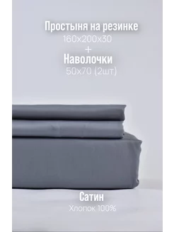 Простынь на резинке 160х200 с наволочками без пододеяльника