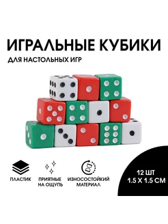 Кости игральные 1.5 х 1.5 см, набор 12 шт