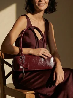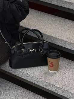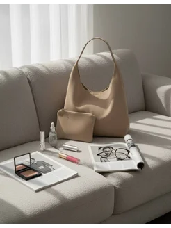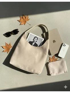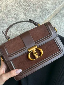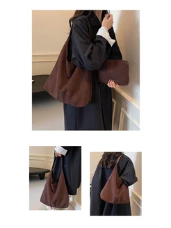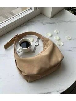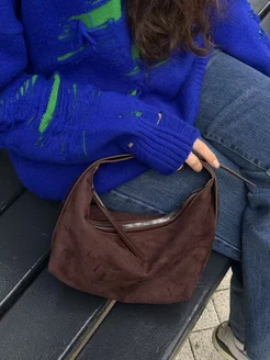 Сумка через плечо замшевый мешок коричневый с косметичкой