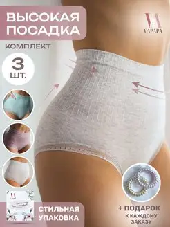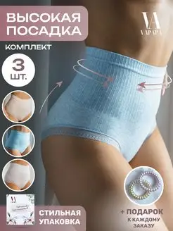 Набор трусов с высокой талией 3 шт, пудровые,серые,бирюзовые