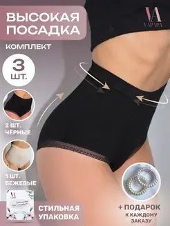 Набор трусов с высокой талией 3 шт, черные 2шт, бежевые 1шт