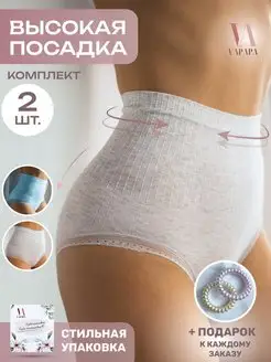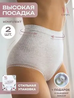 Набор трусов с высокой талией 2 шт, голубые, серые, хлопок