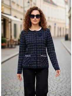 Жакет укороченный трикотажный приталенный Пиджак шанель