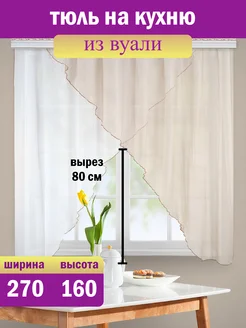 Тюль на кухню короткая на ленте вуаль 2.7х1.6