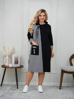 Платье офисное в клетку больших размеров