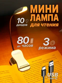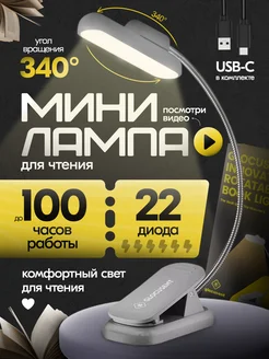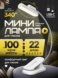 Фонарик для чтения книг лампа на прищепке