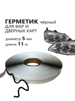 Герметик бутиловый для фар, дверных карт 5 мм 11 м черный