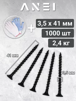Саморезы по дереву 3,5 x 41мм 1000 штук черные острые шурупы