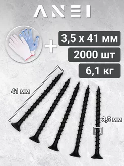 Саморезы по дереву 3,5 x 41мм 2000 штук черные острые шурупы