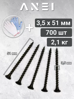 Саморезы по дереву 3,5 x 51 мм 700 штук черные острые шурупы