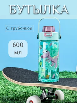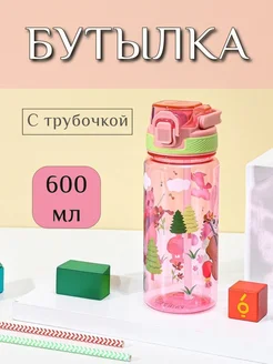 Бутылка для воды детская 600 мл с трубочкой, непроливайка