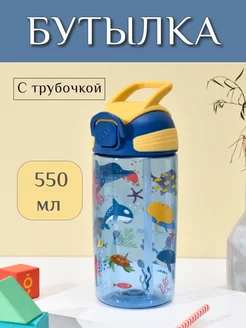 Бутылка для воды детская 500 мл с трубочкой, для школы