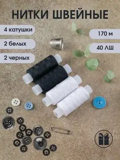Нитки швейные набор для шитья 4 шт. 40 ЛШ черные белые